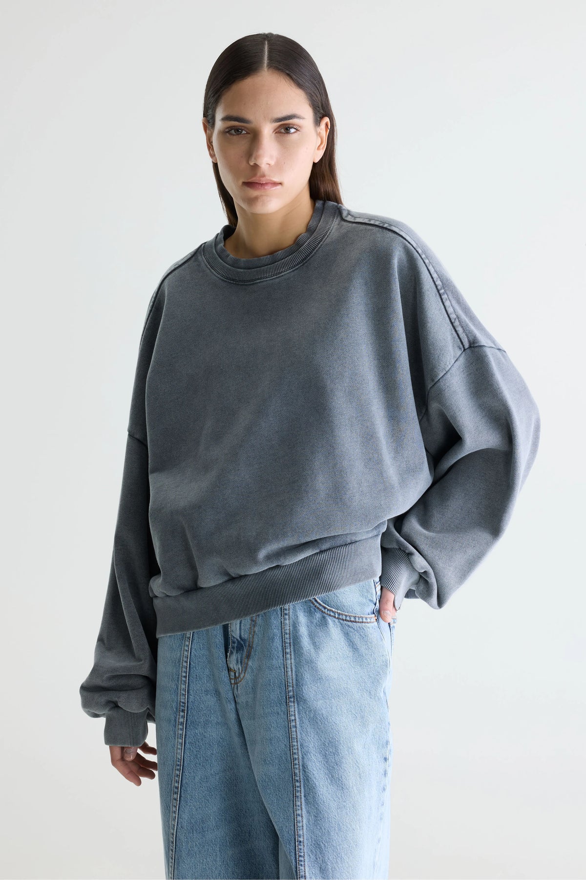 Oversized cropped fit: Choose your usual size for the intended look or size down for a more fitted style. | Anne is 174 cm tall and wears a size S/M