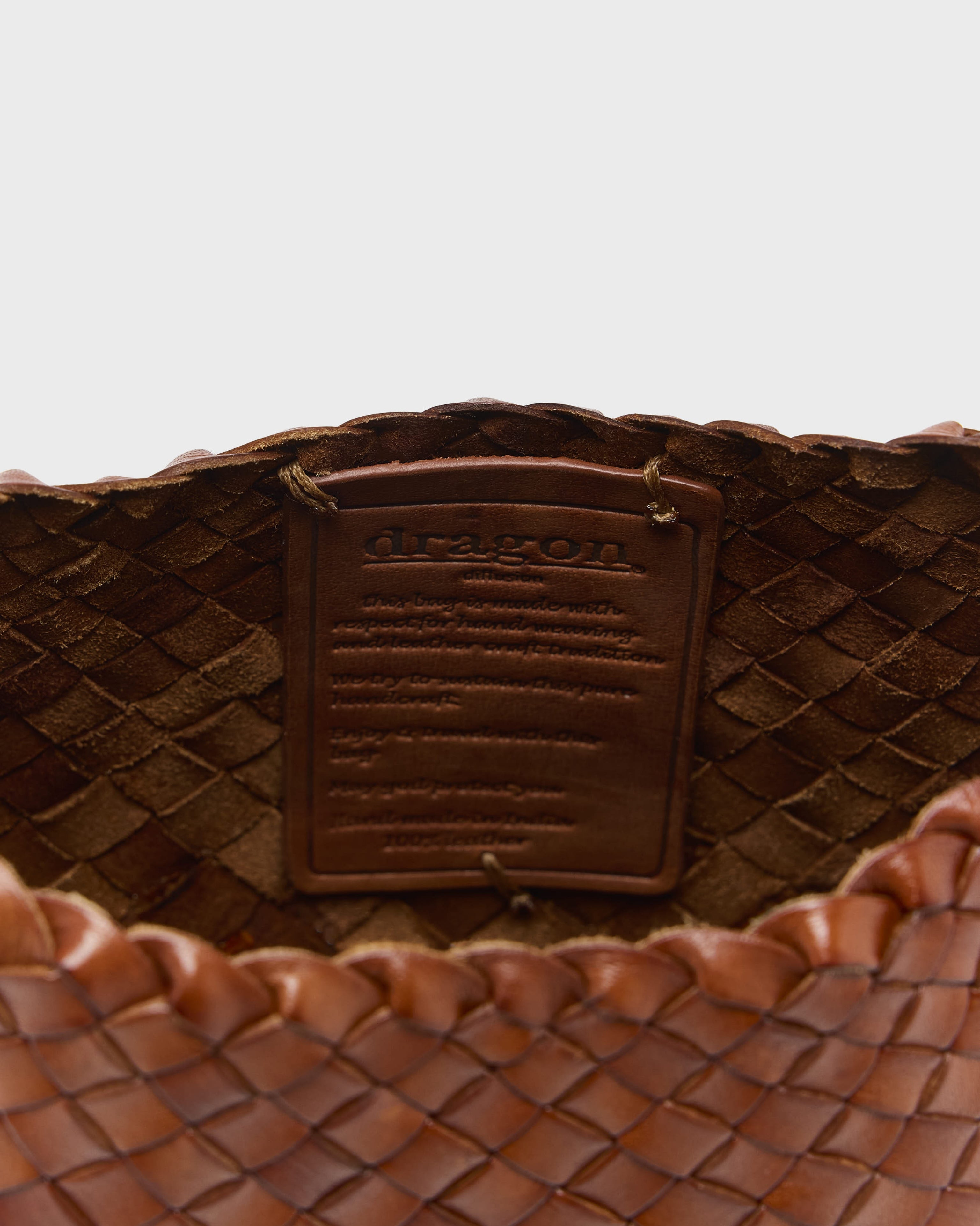 Fondée en 1985 par Craig Wright, Dragon Diffusion s’inspire des cultures du tressage dans le monde entier pour réinterpréter des objets fonctionnels en sacs en cuir contemporains. Sa technique emblématique de tressage à la main crée des structures souples et évolutives, aux formes épurées et aux textures riches. Chaque sac, du crossbody compact au cabas généreux, est unique grâce à la teinture végétale naturelle.